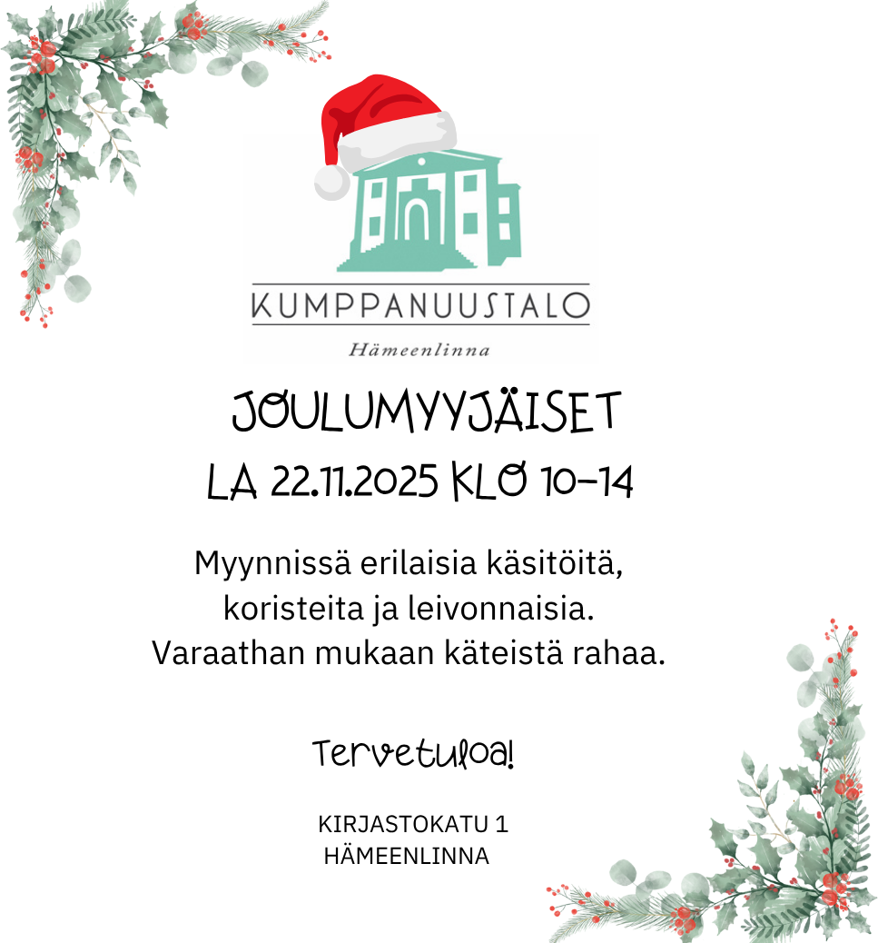 Hyvänmielen joulumyyjäiset tulevat taas, la 22.11. klo 10-14. Myyntipaikat ovat varattavissa järjestöille, yhdistyksille ja yksityishenkilöille. Lisätiedot ja varaukset…