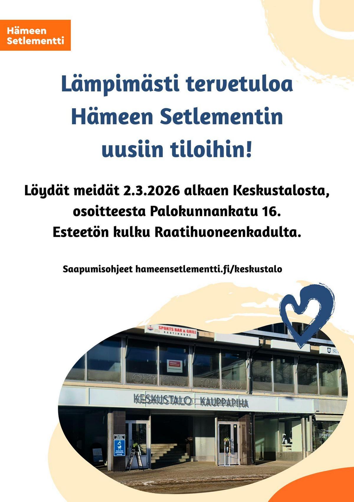 2.3. lähtien Setlementin toiminta käynnistyy uusissa tiloissa Keskustalossa, Palokunnankatu 16.