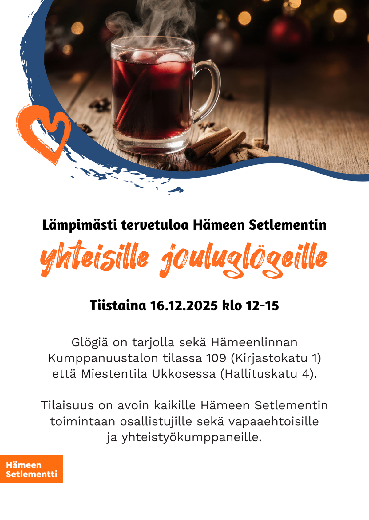 Tilaisuus on avoin kaikille Hämeen Setlementin toimintaan osallistujille sekä vapaaehtoisille